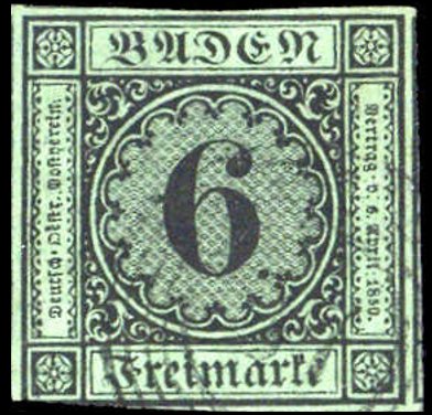 Type: stamp Issuer: Baden Date: 1851 Denom: ?