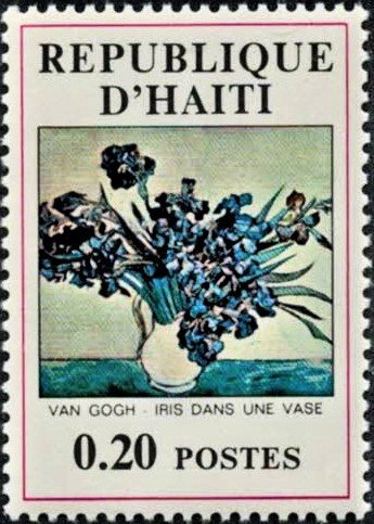 Visibility: public Image owner: none postage 4/29/1971 20c multi dt=paintings (1971 Haiti) d="Irises in a vase" - Van Gogh unwmk Crops No visible images cropped from this one. Measurements Resolution is unknown. Source Source name: Colnect File URL: http://i.colnect.net/b/4218/934/Painting-by-van-Gogh.jpg Uploaded August 23, 2018, 6:52 am by Stan Shebs |