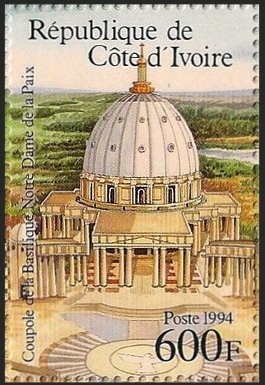 Visibility: public Image owner: none postage 10/21/1994 600fr multi issue=Stained Glass Windows by Pierre Fakhoury from Our Lady of Peace Cathedral, Yamoussoukro unwmk Crops No visible images cropped from this one. Measurements Resolution is unknown. Source Source name: Colnect File URL: http://i.colnect.net/b/4928/150/Aerial-view-of-Cathedral.jpg Uploaded August 23, 2018, 4:25 pm by Stan Shebs |
