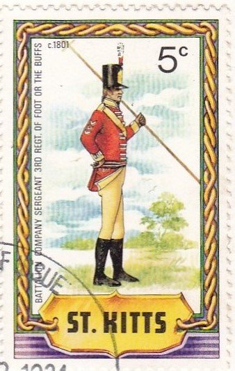Visibility: public Image owner: none postage 3/5/1981 5c multi issue=infantry regiments dt=uniforms (1981) d=Battalion Company Sergeant The Buffs c 1801 wmk=crown & CA spiral perf=14.5 Crops No visible images cropped from this one. Measurements Resolution is unknown. Source Source name: Colnect File URL: http://i.colnect.net/b/4882/651/Battalion-Company-Sergeant--quot-The-Buffs-quot--c-1801.jpg Uploaded August 31, 2018, 9:22 pm by Stan Shebs |