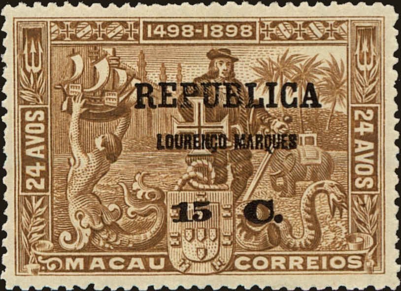 Visibility: public Image owner: none postage 15c bis issue=1913a d=Vasco da Gama (1898) ovpt=REPUBLICA//LOURENCO MARQUES//value oc=blk on=issuer=Macao-4/1/1898-24a unwmk perf=13.5 - 16 Crops No visible images cropped from this one. Measurements Resolution is unknown. Source Source name: Colnect File URL: http://i.colnect.net/b/4226/058/Republica-On-Stamp-Macau.jpg Uploaded September 5, 2018, 12:41 am by Stan Shebs |