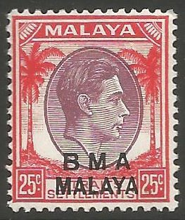 Visibility: public Image owner: none postage 25c red&vio issue=1945 BMA d=King George VI & palms ovpt=BMA//MALAYA oc=blk on=issue=1937-25c-red&vio wmk=mult crown & script CA perf=14 Crops No visible images cropped from this one. Measurements Resolution is unknown. Source Source name: Colnect File URL: http://i.colnect.net/b/5044/625/Overprinted--BMA-Malaya-.jpg Uploaded September 6, 2018, 1:14 am by Stan Shebs |