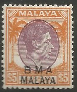 Visibility: public Image owner: none postage $5 org&vio issue=1945 BMA d=King George VI & palms ovpt=BMA//MALAYA oc=blk on=$5-org&vio-unissued wmk=mult crown & script CA perf=14 Crops No visible images cropped from this one. Measurements Resolution is unknown. Source Source name: Colnect File URL: http://i.colnect.net/b/5044/627/Overprinted--BMA-Malaya-.jpg Uploaded September 6, 2018, 1:14 am by Stan Shebs |