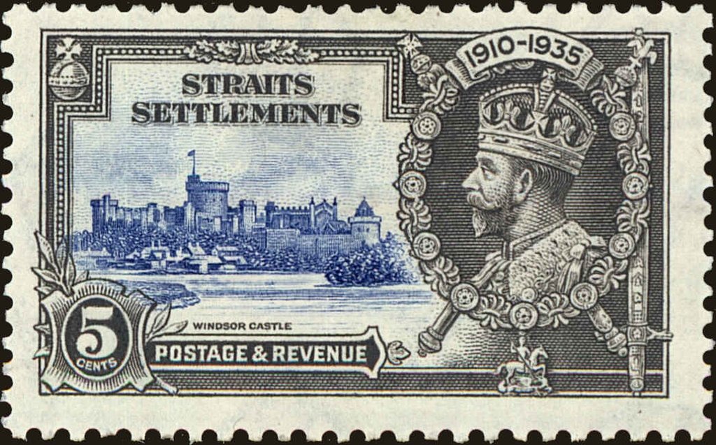 Visibility: public Image owner: none postage 5/6/1935 5c gray&ultra issue=Silver Jubilee d=Windsor Castle & King George V wmk=mult crown & script CA perf=11x12 Crops No visible images cropped from this one. Measurements Resolution is unknown. Source Source name: Colnect File URL: http://i.colnect.net/b/4581/674/Straits-Settlements.jpg Uploaded September 6, 2018, 1:31 am by Stan Shebs |