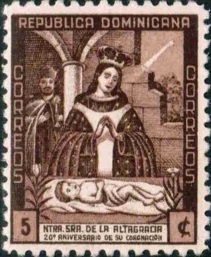Visibility: public Image owner: none postage 8/15/1942 5c viobrn issue=Our Lady of Altagracia 20th wmk=crosses & circles perf=12 Crops No visible images cropped from this one. Measurements Resolution is unknown. Source Source name: Colnect File URL: http://i.colnect.net/b/4536/121/Our-Lady-of-Highest-Grace.jpg Uploaded November 19, 2018, 2:46 pm by Stan Shebs |