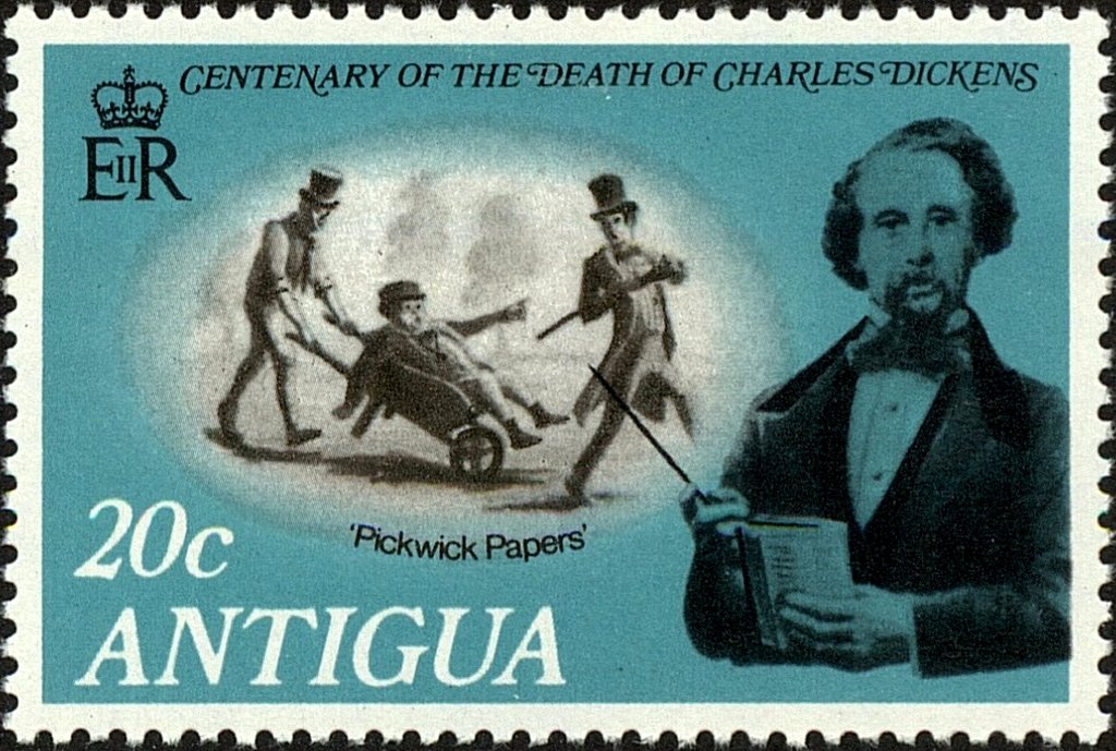 Visibility: public Image owner: none postage 5/19/1970 20c multi issue=Dickens death 100th d=Pickwick Papers wmk=St Edwards crown & CA perf=14.25 Crops No visible images cropped from this one. Measurements Resolution is unknown. Source Source name: Colnect File URL: http://i.colnect.net/b/4505/256/Pickwick-Papers.jpg Uploaded January 10, 2019, 5:33 am by Stan Shebs |