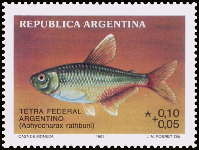 Visibility: public Image owner: none semipostal 6/27/1987 0.10+0.05a multi dt=river fishes (1987) d=Aphyocharax rathbuni unwmk perf=13.5 Crops No visible images cropped from this one. Measurements Resolution is unknown. Source Source name: Colnect File URL: http://i.colnect.net/b/4947/316/Tetra-Federal-Argentino-Aphyocharax-rathbuni.jpg Uploaded January 10, 2019, 6:45 pm by Stan Shebs |