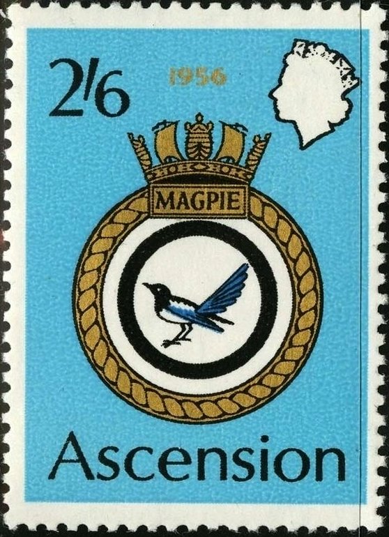 Visibility: public Image owner: none postage 9/7/1970 2sh6p multi issue=Royal Naval Crests 1970 dt=ship's badges (1970) d=badge of HMS Magpie wmk=St Edwards crown & CA perf=12.5x12 Crops No visible images cropped from this one. Measurements Resolution is unknown. Source Source name: Colnect File URL: http://i.colnect.net/b/4522/025/HMS-Magpie---Includes-Eurasian-Magpie-Pica-Pica.jpg Uploaded January 11, 2019, 5:40 pm by Stan Shebs |
