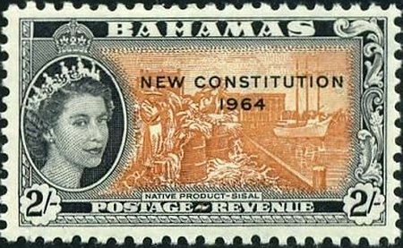 Visibility: public Image owner: none postage 1/7/1964 2sh blk&orgbrn issue=new constitution d=native products - sisal & Queen Elizabeth II on=issue=1954-2sh wmk=mult crown & script CA perf=14 Crops No visible images cropped from this one. Measurements Resolution is unknown. Source Source name: Colnect File URL: http://i.colnect.net/b/4216/701/Overprinted.jpg Uploaded January 15, 2019, 12:51 am by Stan Shebs |