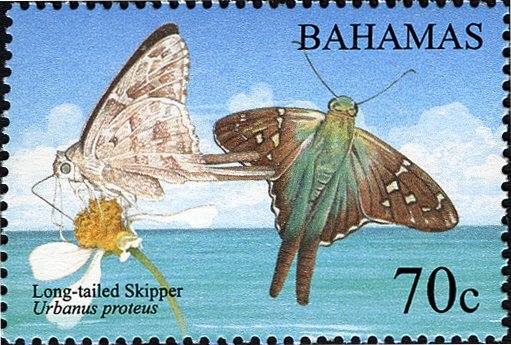Visibility: public Image owner: none postage 2/18/2008 70c multi dt=Bahamas butterflies (2008) d=Long-tailed Skipper Urbanus proteus (2008) Crops No visible images cropped from this one. Measurements Resolution is unknown. Source Source name: Colnect File URL: http://i.colnect.net/b/5147/443/Long-tailed-Skipper-Urbanus-proteus.jpg Uploaded January 15, 2019, 3:00 am by Stan Shebs |