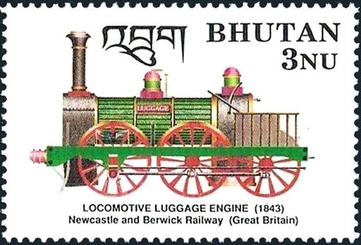 Visibility: public Image owner: none postage 1/30/1990 3nu multi issue=steam locomotives 1990 dt=steam locomotives (1990 Bhutan) unwmk Crops No visible images cropped from this one. Measurements Resolution is unknown. Source Source name: Colnect File URL: http://i.colnect.net/b/5249/536/Luggage-Engine-1843-Great-Britain.jpg Uploaded January 18, 2019, 3:23 pm by Stan Shebs |