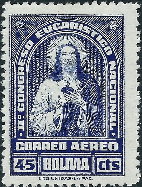 Visibility: public Image owner: none airmail 7/19/1939 45c issue=2nd National Eucharistic Congress d=Jesus Christ (1939) unwmk Crops No visible images cropped from this one. Measurements Resolution is unknown. Source Source name: Colnect File URL: http://i.colnect.net/b/4565/960/Jesus-Christ.jpg Uploaded January 18, 2019, 7:44 pm by Stan Shebs |
