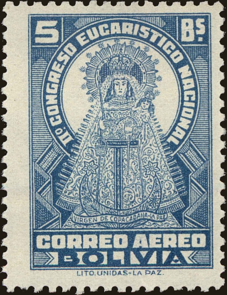 Visibility: public Image owner: none airmail 7/19/1939 5b issue=2nd National Eucharistic Congress d=Madonna of Copacabana unwmk Crops No visible images cropped from this one. Measurements Resolution is unknown. Source Source name: Colnect File URL: http://i.colnect.net/b/5396/054/Madonna-of-Copacabana.jpg Uploaded January 18, 2019, 7:44 pm by Stan Shebs |