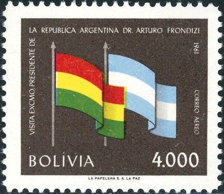 Visibility: public Image owner: none airmail 5/23/1961 400b multi issue=Visit of Frondizi unwmk Crops No visible images cropped from this one. Measurements Resolution is unknown. Source Source name: Colnect File URL: http://i.colnect.net/b/5087/076/Flags-of-Bolivia-and-Argentina.jpg Uploaded January 18, 2019, 7:50 pm by Stan Shebs |