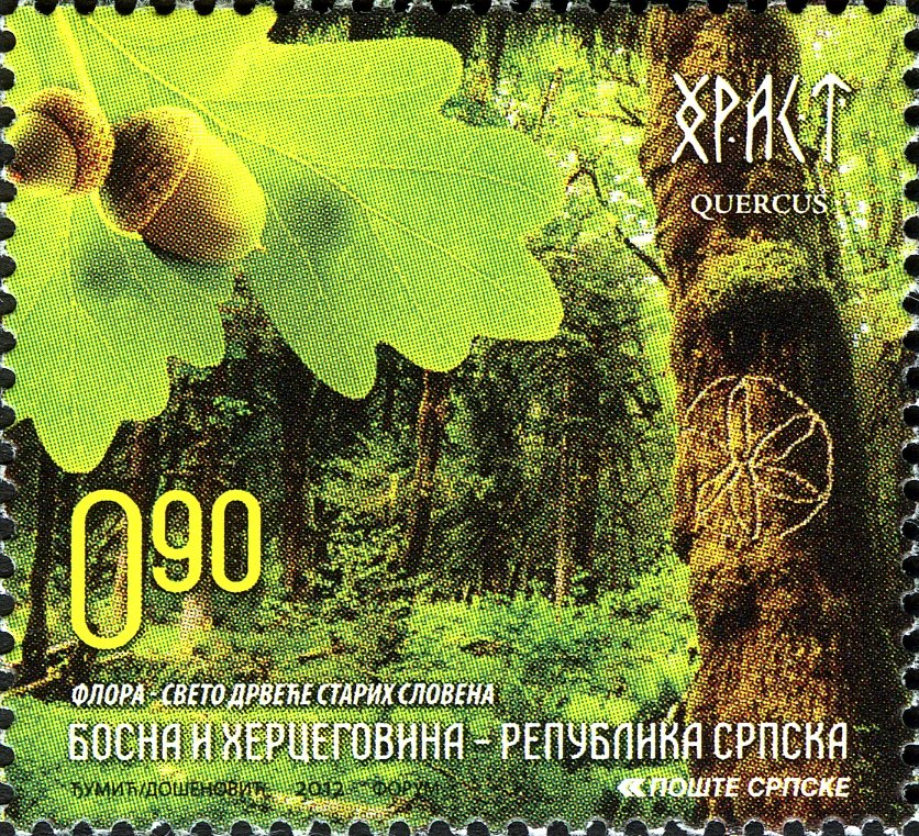Visibility: public Image owner: none postage 6/13/2012 0.90(m) multi issue=Old Slavic Sacred trees unwmk Crops No visible images cropped from this one. Measurements Resolution is unknown. Source Source name: Colnect File URL: http://i.colnect.net/b/4852/915/Hrast-Oak-tree.jpg Uploaded January 18, 2019, 10:42 pm by Stan Shebs |