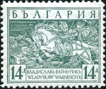 Visibility: public Image owner: none postage 8/4/1935 14l grn issue=Battle of Varna d=King Władysław III in the Fight against the Ottomans wmk=wavy lines (Lithuania) Crops No visible images cropped from this one. Measurements Resolution is unknown. Source Source name: Colnect File URL: http://i.colnect.net/b/4555/842/King-Władysław-III-in-the-Fight-against-the-Ottomans.jpg Uploaded January 23, 2019, 5:27 am by Stan Shebs |