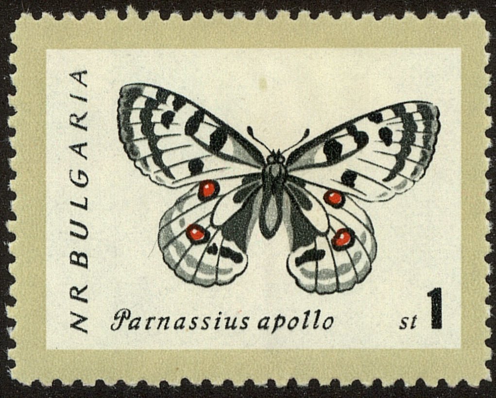 Visibility: public Image owner: none postage 9/13/1962 1s multi dt=butterflies (1962 Bulgaria) d=Parnassius apollo (1962 Bulgaria) unwmk perf=11 Crops No visible images cropped from this one. Measurements Resolution is unknown. Source Source name: Colnect File URL: http://i.colnect.net/b/4400/726/Apollo-Parnassius-apollo.jpg Uploaded January 23, 2019, 4:23 pm by Stan Shebs |