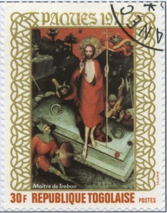Visibility: public Image owner: none postage 4/10/1971 30fr multi issue=Easter 1971 d=Resurrection by Master of Trebon unwmk perf=11x11.5 Crops No visible images cropped from this one. Measurements Resolution is unknown. Source Source name: Colnect File URL: http://i.colnect.net/b/1346/338/Resurrection-by-Master-of-Trebon.jpg Uploaded August 26, 2014, 8:31 pm by Stan Shebs |