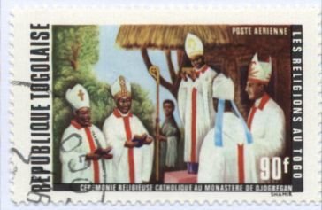 Visibility: public Image owner: none airmail 7/1/1971 90f multi dt=Togolese religions unwmk perf=14.5 Crops No visible images cropped from this one. Measurements Resolution is unknown. Source Source name: Colnect File URL: http://i.colnect.net/b/1346/345/Catholic-bishop-and-priest.jpg Uploaded August 26, 2014, 8:31 pm by Stan Shebs |