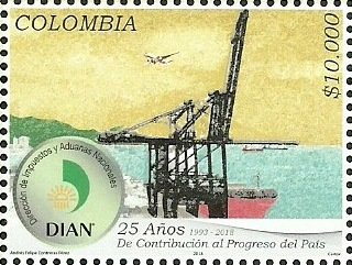 Visibility: public Image owner: none postage 6/1/2018 10000p multi issue=25th Anniversary of DIAN - Directorate of National Taxes and Customs unwmk Crops No visible images cropped from this one. Measurements Resolution is unknown. Source Source name: Colnect File URL: http://i.colnect.net/b/5068/410/Dian.jpg Uploaded January 30, 2019, 12:35 pm by Stan Shebs |