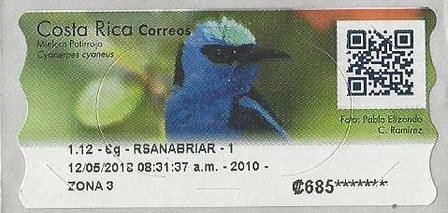 Type: stamp Issuer: Costa Rica Date: 2018 Denom: ?