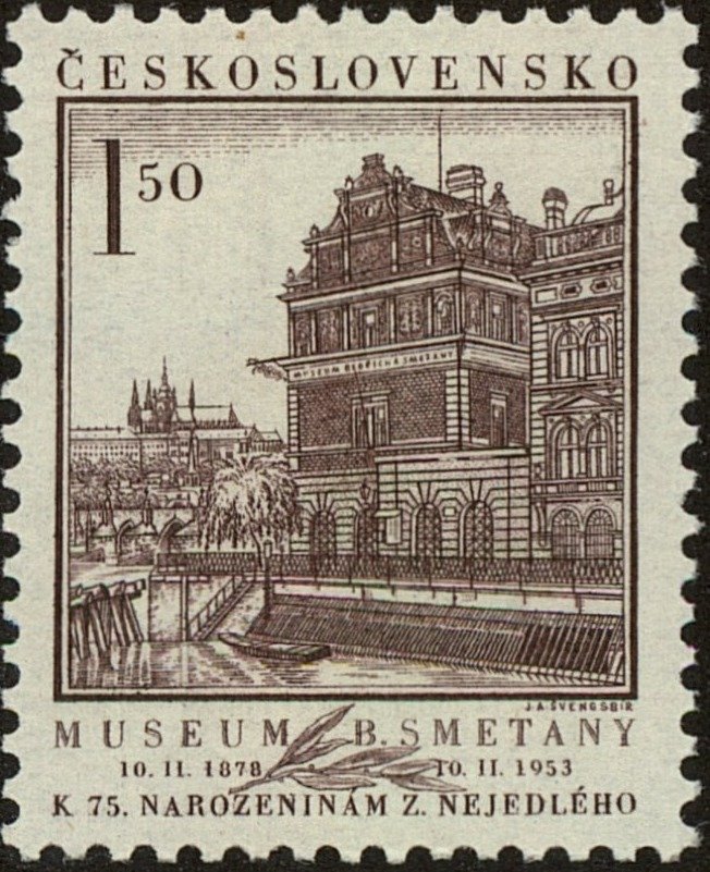 Visibility: public Image owner: none postage 2/10/1953 1.50k graybrn issue=Zdenek Nejedly 75th d=Smetana Museum unwmk perf=11.5 Crops No visible images cropped from this one. Measurements Resolution is unknown. Source Source name: Colnect File URL: http://i.colnect.net/b/5114/809/Smetana-Museum.jpg Uploaded February 1, 2019, 4:34 pm by Stan Shebs |