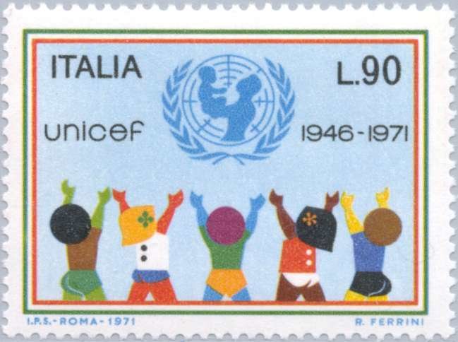 Visibility: public Image owner: none postage 11/26/1971 90l multi issue=25th anniversary of UNICEF d=children & UNICEF emblem wmk=stars Crops No visible images cropped from this one. Measurements Resolution is unknown. Source Source name: Colnect File URL: http://i.colnect.net/b/172/325/UNICEF.jpg Uploaded January 27, 2013, 5:12 am by Stan Shebs |