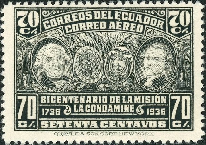 Visibility: public Image owner: none airmail 7/3/1936 70c blk issue=Geodesical Mission Crops No visible images cropped from this one. Measurements Resolution is unknown. Source Source name: Colnect File URL: http://i.colnect.net/b/5000/379/Bicentenary-of-La-Condamine-Scientific-Expedition.jpg Uploaded February 2, 2019, 6:49 pm by Stan Shebs |