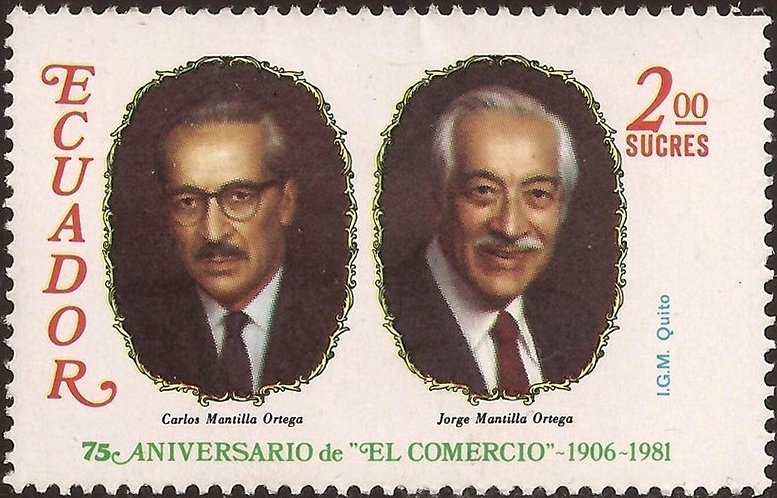 Visibility: public Image owner: none postage 1/1/1981 2.00s multi issue=75th Anniversary of "El Comercio" Newspaper d=Carlos Mantilla Ortega and Jorge Mantilla Ortega unwmk Crops No visible images cropped from this one. Measurements Resolution is unknown. Source Source name: Colnect File URL: http://i.colnect.net/b/5205/695/Carlos-and-Jorge-Mantilla-Ortega-sons-of-the-founder.jpg Uploaded February 2, 2019, 7:33 pm by Stan Shebs |