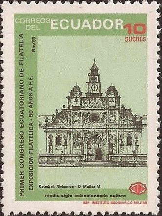 Visibility: public Image owner: none postage 11/21/1985 10s multi issue=First National Philatelic Congress d=Cathedral Riobamba unwmk Crops No visible images cropped from this one. Measurements Resolution is unknown. Source Source name: Colnect File URL: http://i.colnect.net/b/4994/833/Cathedral-Riobamba.jpg Uploaded February 2, 2019, 7:36 pm by Stan Shebs |