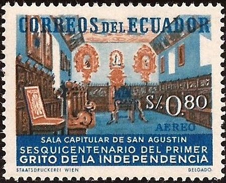 Visibility: public Image owner: none airmail 8/26/1959 0.80s multi issue=150th Anniversary of Independence unwmk Crops No visible images cropped from this one. Measurements Resolution is unknown. Source Source name: Colnect File URL: http://i.colnect.net/b/5266/689/Chapter-Hall-of-St-Augustine-Quito.jpg Uploaded February 3, 2019, 1:17 pm by Stan Shebs |