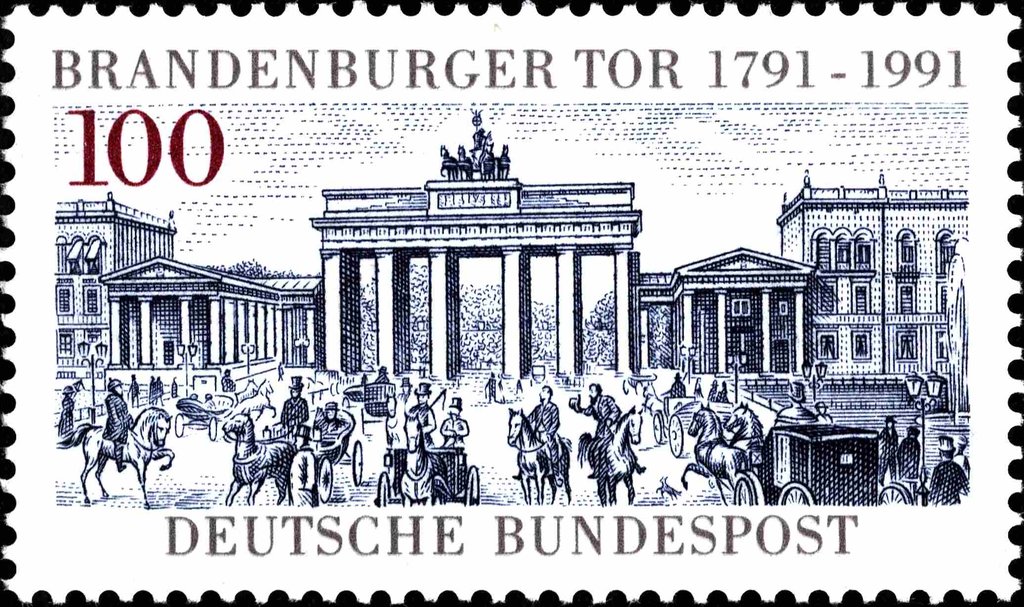 Visibility: public Image owner: none postage 1/8/1991 100(pf) gray&dkbl&red issue=Brandenburg Gate 200th d=Brandenburg Gate with crowds unwmk Crops No visible images cropped from this one. Measurements Resolution is unknown. Source Source name: Colnect File URL: http://i.colnect.net/b/5382/410/Brandenburger-Tor.jpg Uploaded February 8, 2019, 4:35 pm by Stan Shebs |