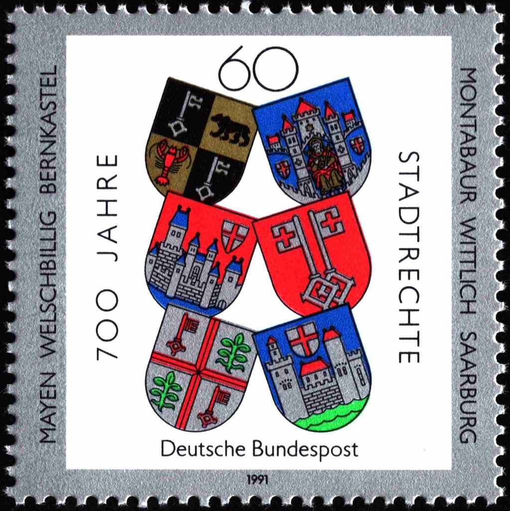 Visibility: public Image owner: none postage 5/2/1991 60(pf) multi issue=towns 750th d=arms of Bernkastel et al unwmk perf=13.75 Crops No visible images cropped from this one. Measurements Resolution is unknown. Source Source name: Colnect File URL: http://i.colnect.net/b/5381/851/Cityrights.jpg Uploaded February 8, 2019, 4:36 pm by Stan Shebs |