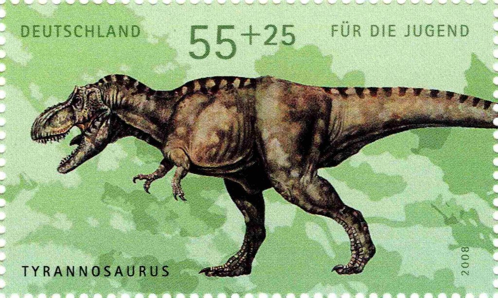 Visibility: public Image owner: none semipostal 9/4/2008 55+25(c) multi issue=Youth Philately 2008 dt=dinosaurs (2008) d=Tyrannosaurus (2008) unwmk Crops No visible images cropped from this one. Measurements Resolution is unknown. Source Source name: Colnect File URL: http://i.colnect.net/b/5196/584/Tyrannosaurus.jpg Uploaded February 8, 2019, 10:16 pm by Stan Shebs |