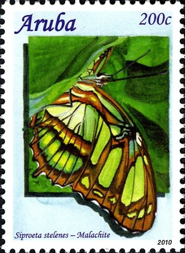 Visibility: public Image owner: none postage 12/22/2010 200c multi dt=Caribbean butterflies (2010) d=Siproeta stelenes (2010 Aruba) unwmk Crops No visible images cropped from this one. Measurements Resolution is unknown. Source Source name: Colnect File URL: http://i.colnect.net/b/977/305/Malachite-Siproeta-stelenes.jpg Uploaded August 26, 2014, 9:25 pm by Stan Shebs |