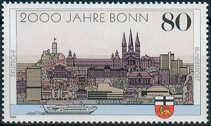 Visibility: public Image owner: none postage 1/12/1989 multi issue=Bonn 2000th d=Important buildings in Bonn ship coat of arms unwmk perf=14 Crops No visible images cropped from this one. Measurements Resolution is unknown. Source Source name: Wikimedia Commons File URL: http://upload.wikimedia.org/wikipedia/commons/5/50/DBP_1989_1402-R.JPG Uploaded December 25, 2011, 4:39 am by Stan Shebs |