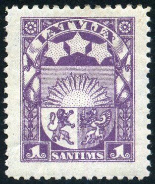 Visibility: public Image owner: none postage 1s vio issue=1923 d=arms & stars wmk=wavy lines (Latvia) perf=11.5 Crops No visible images cropped from this one. Measurements Resolution is unknown. Source Source name: Colnect File URL: http://i.colnect.net/b/5030/173/Coat-of-Arms-1-santims.jpg Uploaded February 22, 2019, 5:21 pm by Stan Shebs |