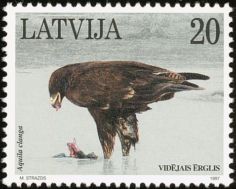Visibility: public Image owner: none postage 2/8/1997 20s multi dt=birds (1997 Latvia) d=Aquila clanga (1997) unwmk perf=12.75x12.5 Crops No visible images cropped from this one. Measurements Resolution is unknown. Source Source name: Colnect File URL: http://i.colnect.net/b/5244/409/Greater-Spotted-Eagle-Aquila-clanga.jpg Uploaded February 22, 2019, 5:22 pm by Stan Shebs |