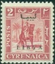 Visibility: public Image owner: none postage 12/24/1951 2m rosecar issue=1951c d=Senussi warrior ovpt=(arabic)//LIBYA oc=blk on=issuer=Cyrenaica-1950-2m unwmk perf=12.5 Crops No visible images cropped from this one. Measurements Resolution is unknown. Source Source name: Colnect File URL: http://i.colnect.net/b/5415/433/Cyrenaica-Overprinted-in-Black.jpg Uploaded February 23, 2019, 2:23 pm by Stan Shebs |