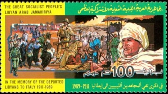 Visibility: public Image owner: none postage 10/26/1989 100dh multi issue=78th Anniversary of Deportation of Libyans to Italy unwmk Crops No visible images cropped from this one. Measurements Resolution is unknown. Source Source name: Colnect File URL: http://i.colnect.net/b/5476/636/Deportation-of-Libyans-to-Italy.jpg Uploaded February 23, 2019, 4:32 pm by Stan Shebs |