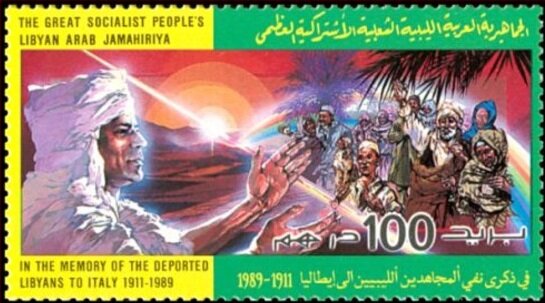 Visibility: public Image owner: none postage 10/26/1989 100dh multi issue=78th Anniversary of Deportation of Libyans to Italy unwmk Crops No visible images cropped from this one. Measurements Resolution is unknown. Source Source name: Colnect File URL: http://i.colnect.net/b/5476/638/Deportation-of-Libyans-to-Italy.jpg Uploaded February 23, 2019, 4:32 pm by Stan Shebs |