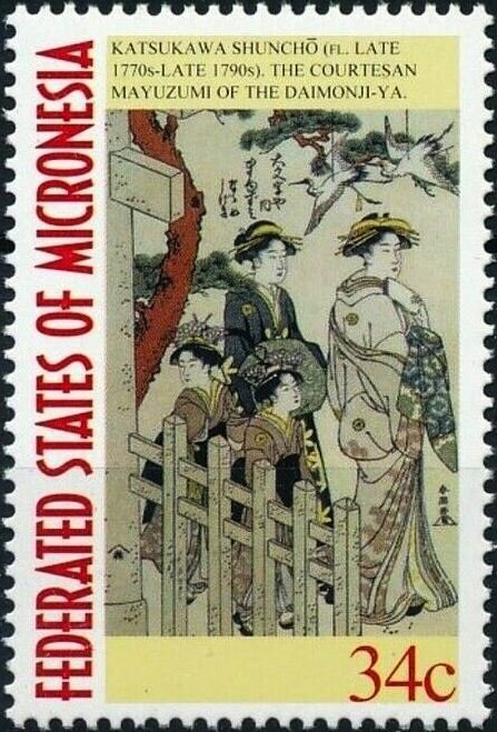 Visibility: public Image owner: none postage 4/20/2001 34c multi issue=PHILANIPPON '01 d="The Courtesan Hinazuru of the Choji-ya" unwmk perf=14 Crops No visible images cropped from this one. Measurements Resolution is unknown. Source Source name: Colnect File URL: http://i.colnect.net/b/5626/985/The-Courtesan-Mayuzumi-of-the-Daijmonji-Ya.jpg Uploaded February 28, 2019, 3:11 am by Stan Shebs |