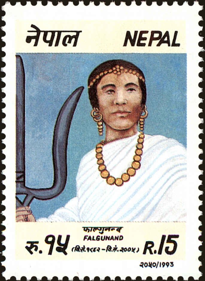 Visibility: public Image owner: none postage 12/28/1993 5r multi issue=Tourism 1993 unwmk Crops No visible images cropped from this one. Measurements Resolution is unknown. Source Source name: Colnect File URL: http://i.colnect.net/b/4969/315/Anniversaries--Falgunanda.jpg Uploaded March 4, 2019, 6:30 pm by Stan Shebs |