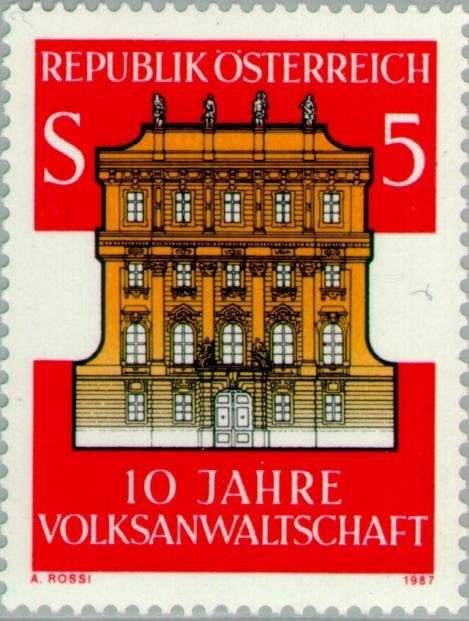 Visibility: public Image owner: none postage 7/1/1987 5s issue=Ombudsmen's Office 10th d=Building of the Austrian Public Ombudsman Vienna unwmk perf=14.25x13.5 Crops No visible images cropped from this one. Measurements Resolution is unknown. Source Source name: Colnect File URL: http://i.colnect.net/images/b/137/337/Building-of-the-Austrian-Public-Ombudsman-Vienna.jpg Uploaded February 3, 2013, 6:56 pm by Stan Shebs |
