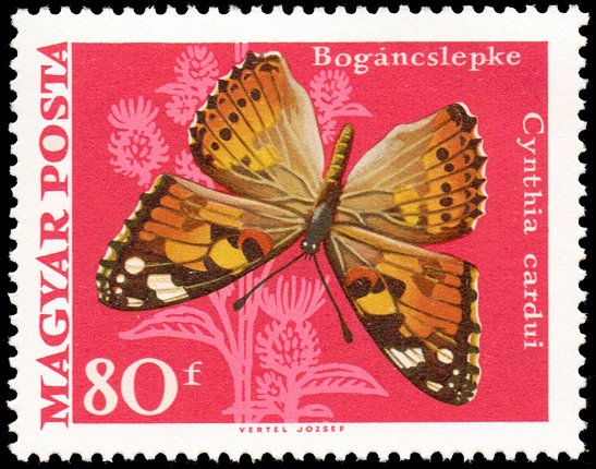 Visibility: public Image owner: none postage 4/15/1969 80f multi dt=butterflies & moths (1969) d=Cynthia cardui (1969) unwmk perf=12 Crops No visible images cropped from this one. Measurements Resolution is unknown. Source Source name: Colnect File URL: http://i.colnect.net/b/890/335/Painted-Lady-Cynthia-cardui.jpg Uploaded August 26, 2014, 10:28 pm by Stan Shebs |