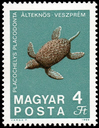 Visibility: public Image owner: none postage 9/1/1969 4fo multi issue=State Geological Institute 100th dt=Fossils & minerals (1969) d=Fossilized turtle Placochelys placodonta from Veszprém unwmk perf=11.5x12 Crops No visible images cropped from this one. Measurements Resolution is unknown. Source Source name: Colnect File URL: http://i.colnect.net/b/890/356/Fossilized-Turtle-Placochelys-placodonta-from-Veszprém.jpg Uploaded August 26, 2014, 10:29 pm by Stan Shebs |
