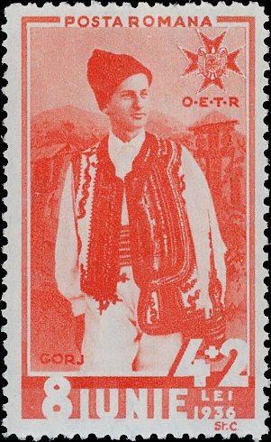 Visibility: public Image owner: none semipostal 6/8/1936 4+2L orgred issue=King Carol II accession 6th dt=national costumes (1936) d=youth of Gorj wmk=crowns & monograms perf=13.5 Crops No visible images cropped from this one. Measurements Resolution is unknown. Source Source name: Colnect File URL: http://i.colnect.net/b/5136/399/National-Costumes---Gorj.jpg Uploaded March 14, 2019, 7:06 pm by Stan Shebs |