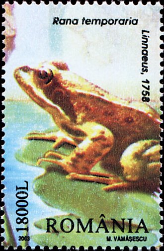 Visibility: public Image owner: none postage 10/28/2003 18000l multi dt=reptiles & amphibians from Romania d=Rana temporaria (Linnaeus, 1758) Crops No visible images cropped from this one. Measurements Resolution is unknown. Source Source name: Colnect File URL: http://i.colnect.net/b/5189/160/European-Common-Frog-Rana-temporaria.jpg Uploaded March 17, 2019, 7:34 pm by Stan Shebs |