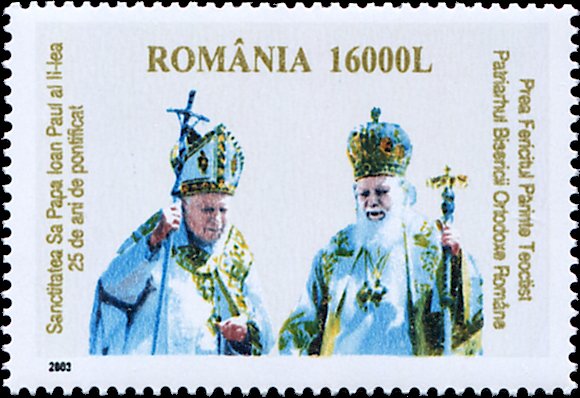 Visibility: public Image owner: none postage 11/28/2003 16000L multi issue=Bridge between the Orient and Occident - His Holiness Pope John Paul II - 25 Years of Pontificate Crops No visible images cropped from this one. Measurements Resolution is unknown. Source Source name: Colnect File URL: http://i.colnect.net/b/5183/862/Pope-John-Paul-II-and-Patriarch-Teoctist-I.jpg Uploaded March 17, 2019, 7:34 pm by Stan Shebs |