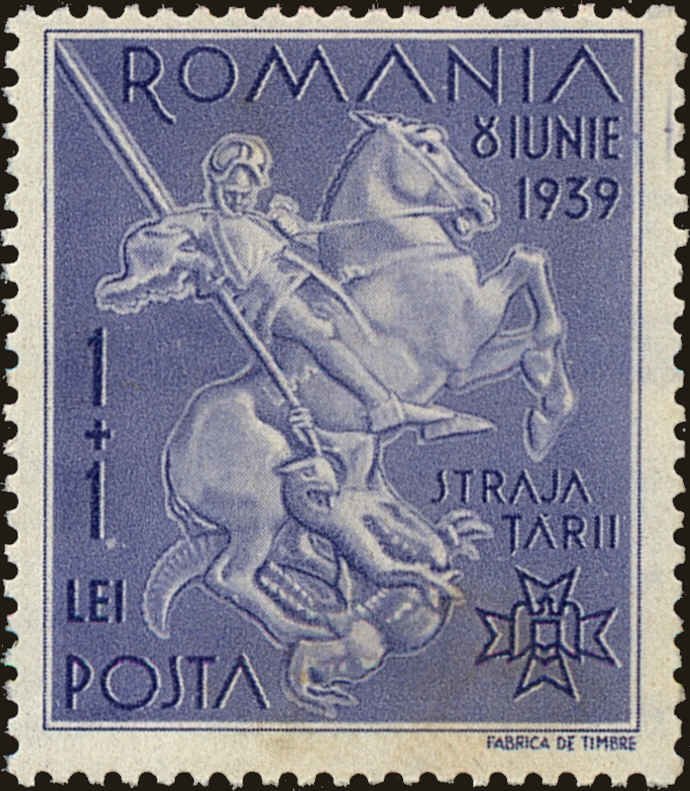 Visibility: public Image owner: none semipostal 6/8/1939 1+1L issue=King Carol II accession 9th d=St George & the dragon wmk=crowns & monograms perf=13.5x13.25 Crops No visible images cropped from this one. Measurements Resolution is unknown. Source Source name: Colnect File URL: http://i.colnect.net/b/5042/161/St-George-and-the-Dragon.jpg Uploaded March 18, 2019, 2:00 am by Stan Shebs |